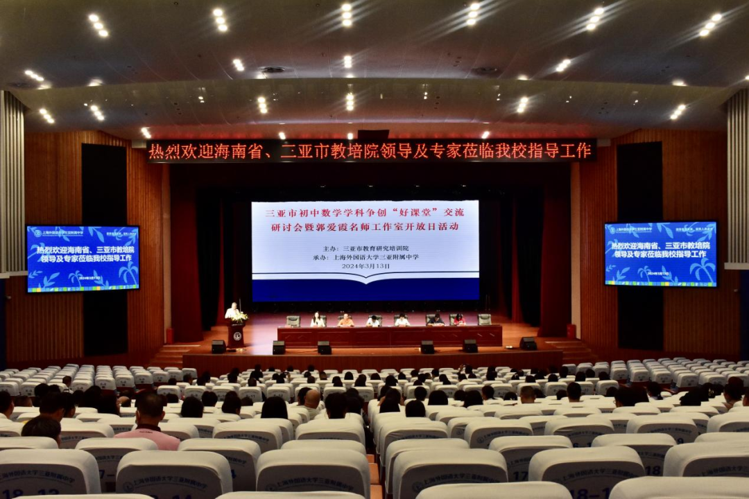 春阳升起,万物一新。为扎实推进基础教育高质量发展,深化三亚市初中数学课堂教学改革,促进教师专业成长,实现学科建设高质量发展,由三亚市教育研究培训院主办,我校承办的三亚市初中数学学科争创“好课堂”交流研讨会暨郭爱霞工作室开放日活动于2024年3月13日在我校大礼堂隆重举行。