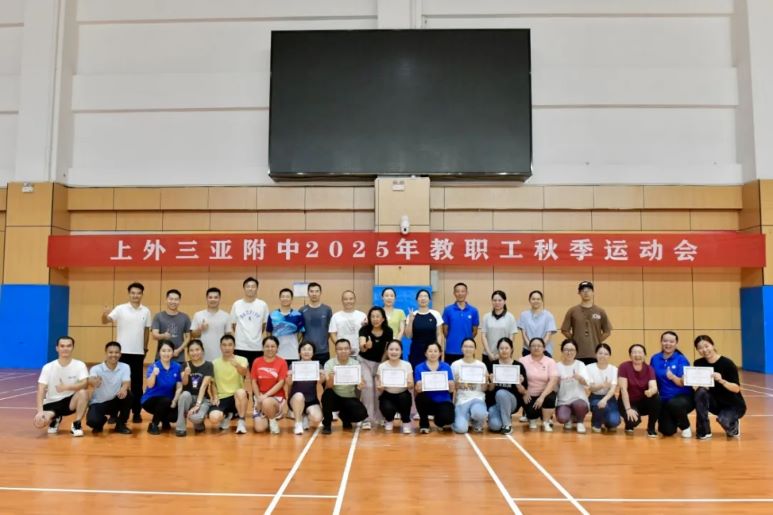 为丰富教职工文化生活,增强团队凝聚力,上海外国语大学三亚附属中学工会在十月精心组织举办了以“享运动快乐,凝团队力量”为主题的2025年教职工秋季运动会。活动于10月16日与10月30日在校体育馆热烈进行,现场气氛活跃,充分展现了全体教职工昂扬向上的精神风貌。