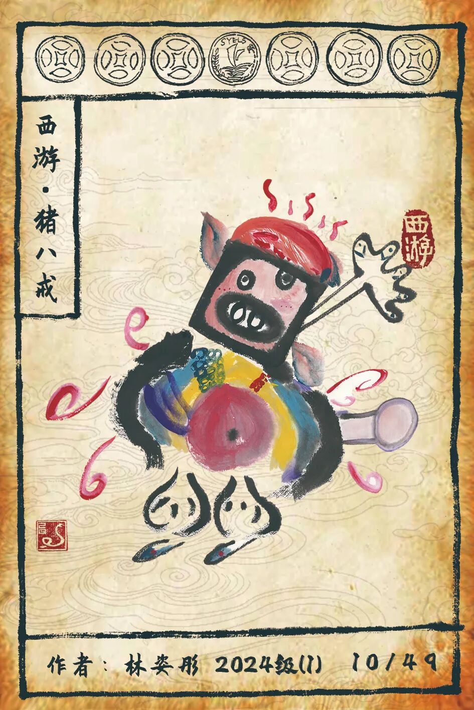 上外币作为夜市流通的唯一“合法货币”,是本次夜市活动的核心创意。今年的上外币以《西游记》经典人物为创意蓝本,巧妙融合了传统国画与毕加索立体主义、抽象风格,打破传统审美框架;背面采用隶书与中国篆刻艺术,尽显东方美学韵味。