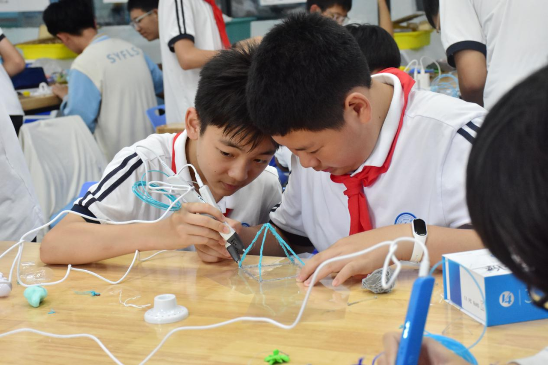 “非遗技艺传承区”里,活字印刷工坊墨香四溢,学生们亲手排列《少年强》诗篇;扎染秘境中,布料在巧手下幻化出斑斓纹样;竹编小匠们则编织出各种精美的杯垫、蝴蝶书签和摆件。
