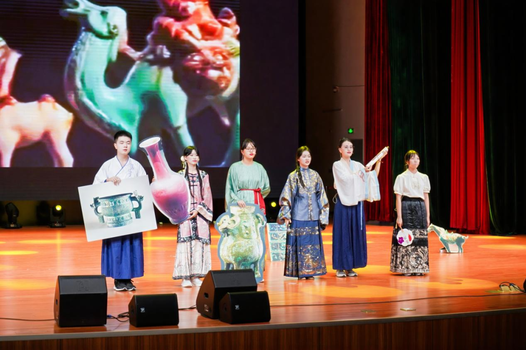 学生在国风大舞台呈现阅读成果,如演绎《将进酒》《归乡》《雷雨》《红船》等节目,展现别样风采,充分体现了学校“深课堂”、“宽教育”的理念。