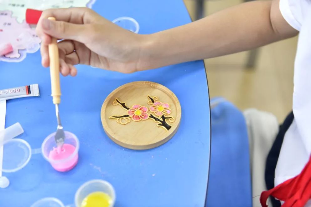 刘溪、方燕妹老师的《景泰蓝DIY》以“民族瑰宝”为核心,带领学子们解锁景泰蓝画的非遗魅力。学生们不仅掌握了基础创作技巧,展现出丰富的想象力与动手能力,更通过亲手创作,读懂了景泰蓝背后的匠心传承,在实践中感受了民族文化的独特魅力。