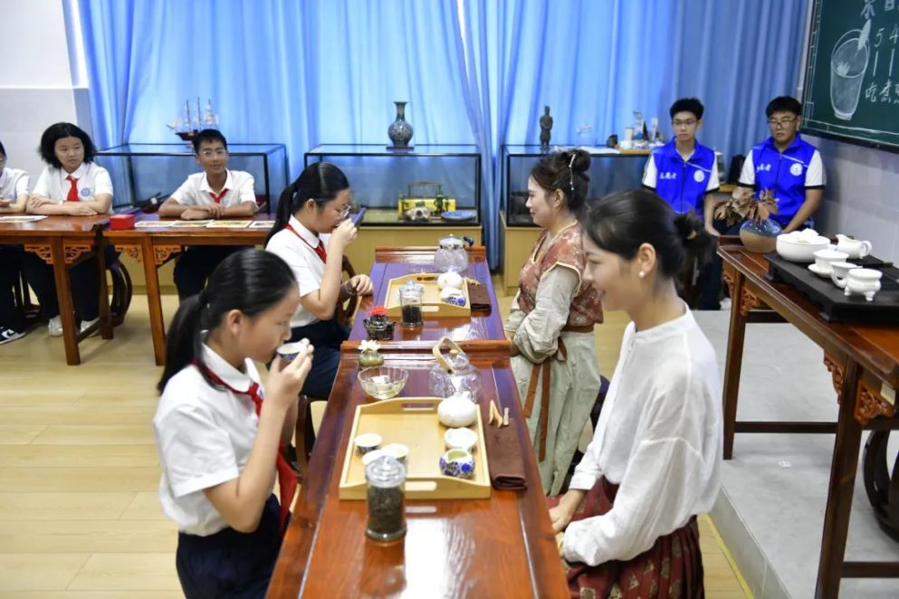 茶艺社朱强、晏兰、鲁婷婷三位老师的《茶艺初体验》课堂,以生动有趣的形式,带领学生穿越千年茶文化,在实操中学习了标准的茶艺流程和礼仪规范,让学生在沉浸式体验中感受华夏茶香的独特魅力。