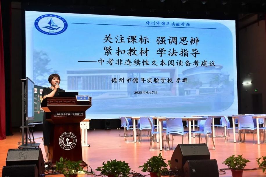 编者按:喧鸟覆春洲,杂英满芳甸。为引领备考方向,提高复习效率,切实做好我省中考语文学科备考工作,4月7日,海南省教育研究培训院在上海外国语大学三亚附属中学(以下简称“上外三亚附中”)组织召开了海南省2023中考语文学科备考培训会。来自全省各市县八百余名语文教师齐聚一堂,会议由三亚市教育研究培训院教科研中心吴家英主任主持.