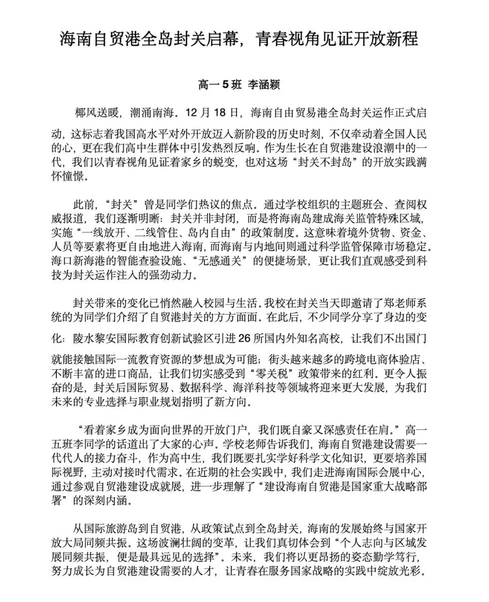 本次讲座信息丰富、深入浅出,兼具政策高度与生活温度,在学生们心中播下了理解自贸港、投身自贸港的种子。风好正扬帆,奋斗正当时。在历史性的关口,上外三亚附中学子将以青春之我,与海南自贸港共赴一个更加灿烂的未来!
