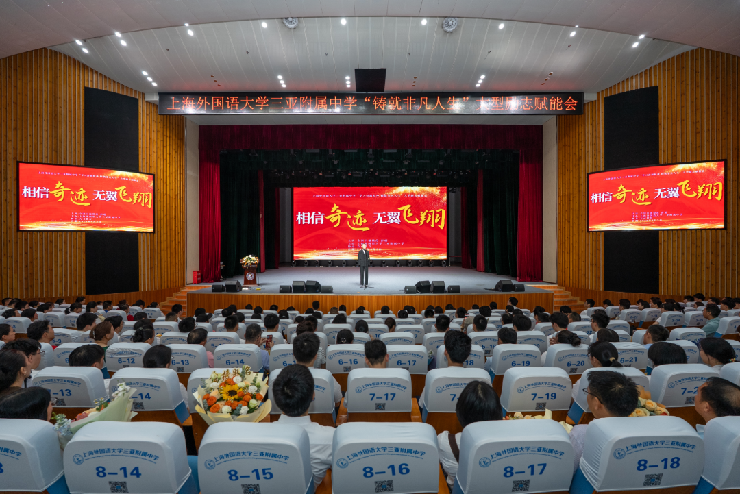 春风浩荡战鼓急,少年逐梦正当时。为点燃备考激情、凝聚奋进力量,4 月 3 日,上海外国语大学三亚附属中学 2026 届初三、高三“薪火相传,决胜中高考”誓师大会在学校志远礼堂与田径场隆重举行。校党总支书记方正明携全体党政班子成员,与全体毕业班师生、家长齐聚一堂,以庄严仪式凝聚信念,以昂扬姿态奔赴考场,共同奏响冲刺中高考的激昂乐章。